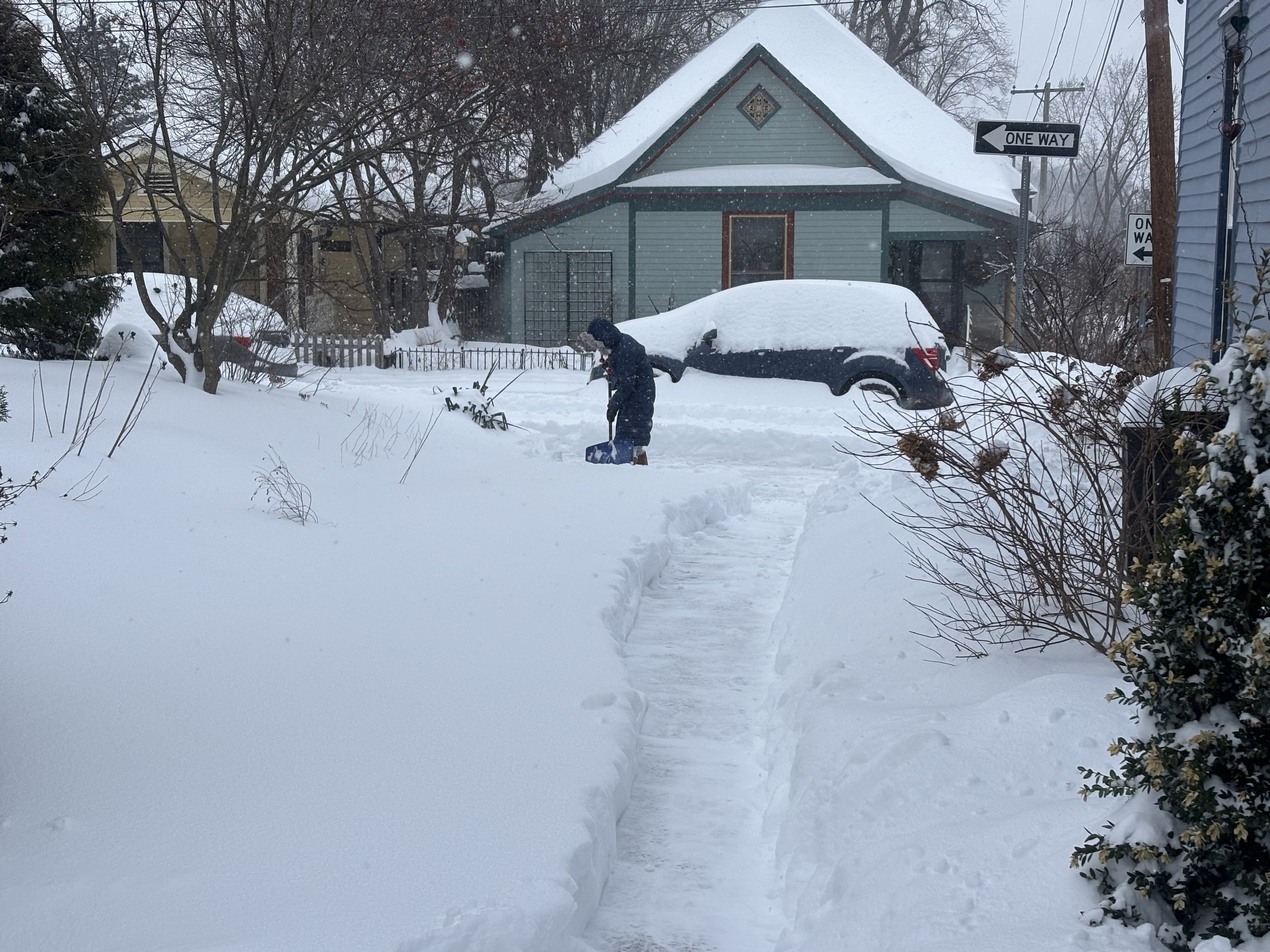 I wore my heart rate monitor while shoveling for over an hour. Moving that much snow took a bit of work.